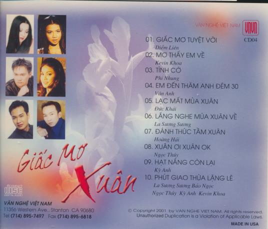 Giac Mo Xuan MUSIC AUDIO CD vietnam pop Van Nghe Viet Nam v-pop 2001 VIETNAMESE