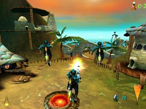 Giants: Citizen Kabuto blends classic elements of real-time strategy and 3D action in an interactive, organic environment. Violent power struggles take place on over 25 island settings. Both first- and third-person views are available, as well as special camera angles like Kabuto's "mouth-cam." Gamers can choose to play one of three different species in the plot-driven single-player campaign or in customizable multiplayer battles.