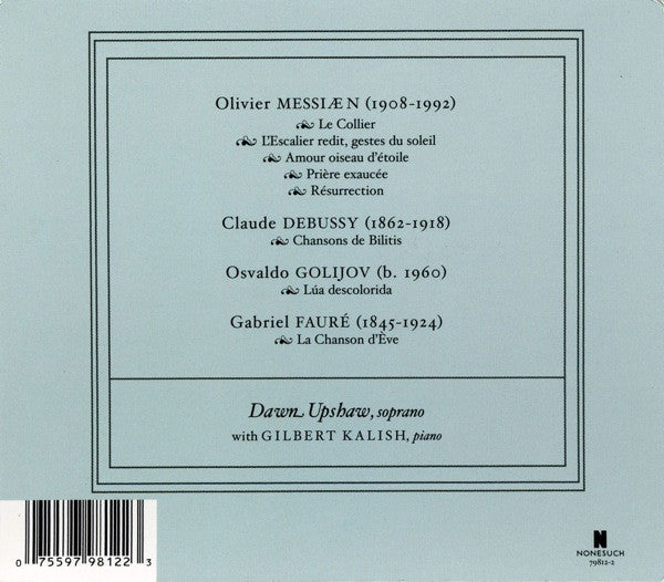 Dawn Upshaw With Gilbert Kalish - Olivier Messiaen, Claude Debussy, Osvaldo Golijov & Gabriel Fauré: Voices Of Light (Music Of Messiæn, Debussy, Golijov & Fauré)