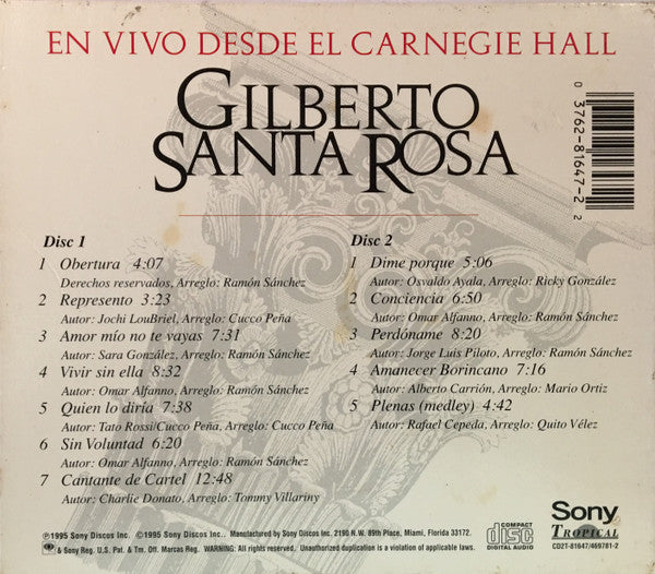 GILBERTO SANTA ROSA: EN VIVO DESDE EL CARNEGIE HALL 2-DISC SET