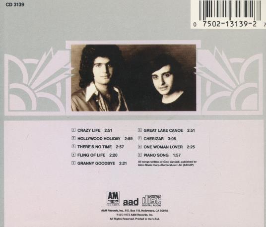 Gino Vannelli: Crazy Life MUSIC AUDIO CD pop soft rock 1990 A&M Records MISPRINT