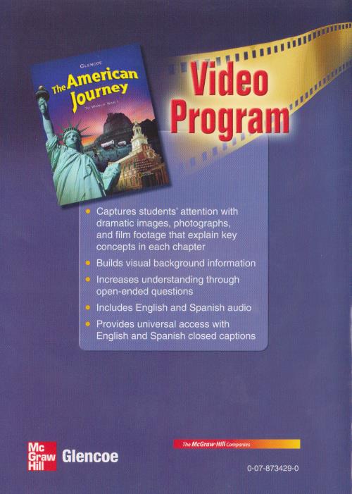 Captures students' attention with dramatic images, photographs, and film footage that explain key concepts in each chapter Builds visual background information Increases understanding through open-ended questions Includes English and Spanish audio Provides universal access with English and Spanish closed captions