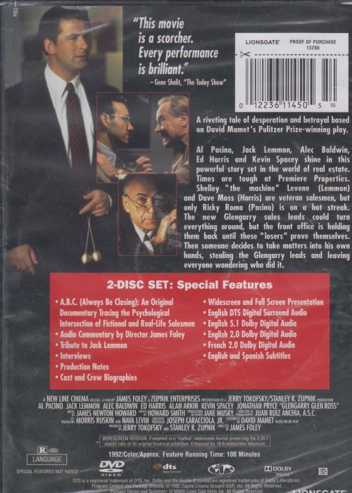 Glengarry Glen Ross 10-Year Anniversary Special DVD VIDEO MOVIE Al Pacino SEALED