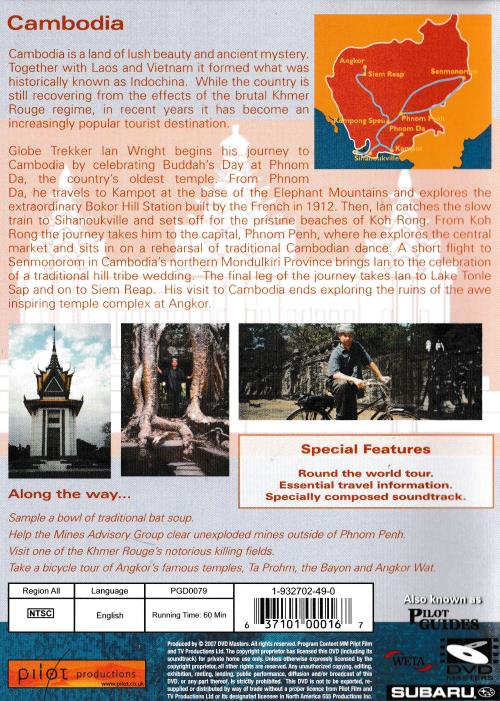 Cambodia is a land of lush beauty and ancient mystery. Together with Laos and Vietnam it formed what was historically known as Indochina. While the country is still recovering from the effects of the brutal Khmer Rouge regime, in recent years it has become an increasingly popular tourist destination. Globe Trekker Ian Wright begins his journey to Cambodia by celebrating Buddha s Day at Phnom Da, the country s oldest temple. From Phnom Da, he travels to Kampot at the base of the Elephant Mountains and explores the extraordinary Bokor Hill Station built by the French in 1912. Then, Ian catches the slow train to Sihanoukville and sets off for the pristine beaches of Koh Rong. From Koh Rong the journey takes him to the capital, Phnom Penh, where he explores the central market and sits in on a rehearsal of traditional Cambodian dance. A short flight to Senmonorom in Cambodia s northern Mondulkiri Province brings Ian to the celebration of a traditional hill tribe wedding. The final leg of the journey takes Ian to Lake Tonle Sap and on to Siem Reap. His visit to Cambodia ends exploring the ruins of the awe inspiring temple complex at Angkor. Along the way.... Sample a bowl of traditional bat soup. Help the Mines Advisory Group clear unexploded mines outside of Phnom Penh. Visit one of the Khmer Rouge s notorious killing fields Take a bicycle tour of Angkor s famous temples, Ta Prohm, the Bayon and Angkor Wat.