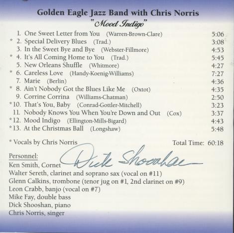 GOLDEN EAGLE JAZZ BAND WITH CHRIS NORRIS: MOOD INDIGO W/ SIGNED ARTWORK BY PIANIST DICK SHOOSHAN