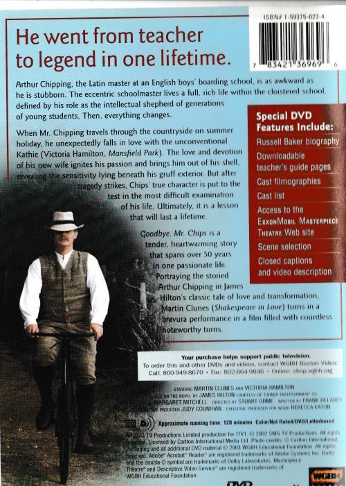 When Mr. Chipping travels through the countryside on summer holiday, he unexpectedly falls in love with the unconventional Kathie (Victoria Hamilton, Mansfield Park). The love and devotion of his new wife ignites his passion and brings him out of his shell, revealing the sensitivity lying beneath his gruff exterior. But after tragedy strikes, Chips true character is put to the test in the most difficult examination of his life. Ultimately, it is a lesson that will last a lifetime.