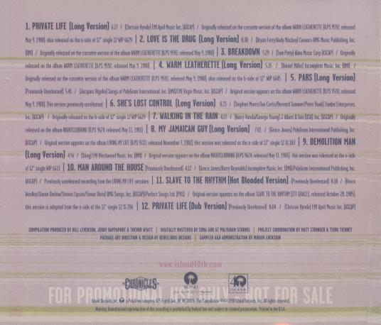 Grace Jones: Private Life: The Compass Point Sessions Sampler Promo
