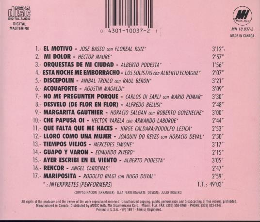 Tango: Grandes Voces showcases a collection of iconic tango voices from different eras, capturing the essence of this passionate dance music. Album produced in Canada under the MH record label.