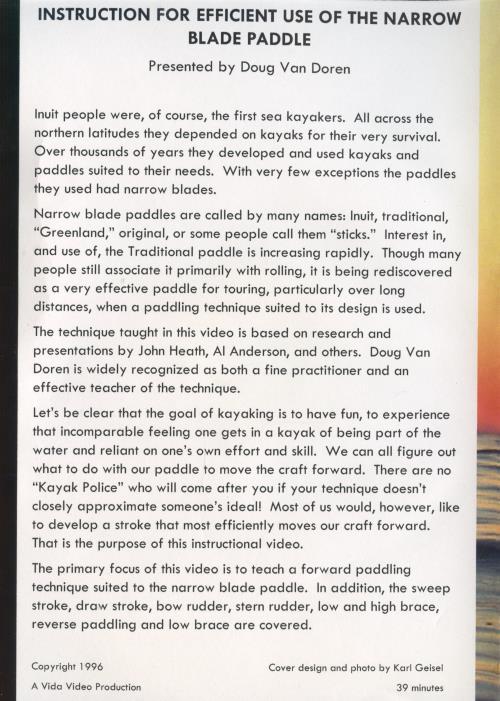 Greenland Style Kayaking DVD VIDEO INSTRUCTIONAL learn narrow blade paddle usage