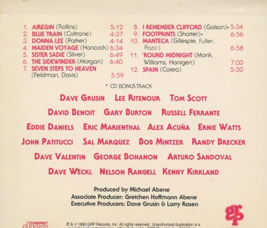 GRP All-Star Big Band: Self-Titled PROMO MUSIC AUDIO CD jazz brass oldies! 1992