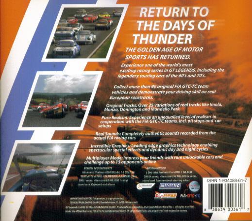 Originally released independently (and to critical acclaim) by the developer, Simbin's GT Legends is designed to deliver a believably detailed driving simulation, with a sophisticated, encompassing physics model and contemporarily impressive graphics. Like the development team, most of the game's tracks are set in Europe, but the selection of available 1960s and '70s autos comprises an international selection of manufacturers, and includes Cobras, 'Vettes, Mini-Coopers, Porsche 911s, and Ferraris 275s. Five levels of difficulty allow beginners to ease their way up to the demandingly "ultra realistic" simulation settings, and available modes of play allow for quick races, and career building.