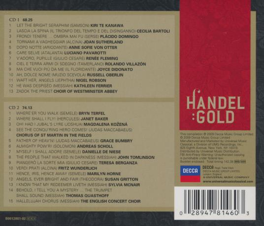 Handel: Gold 2-Disc MUSIC AUDIO CD classical baroque opera choral mix 2009 Decca