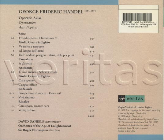 Handel: Operatic Arias: David Daniels MUSIC AUDIO CD Orchestra Age Enlightenment