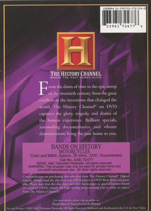 Through engaging narration, stunning visuals, and expert interviews, "Hands On History: Motorcycles" offers a comprehensive and captivating journey into the world of motorcycles, making it a must-watch for motorcycle enthusiasts of all ages. Whether you're a seasoned rider or simply curious about the allure of these two-wheeled wonders, this DVD promises to inform, inspire, and entertain.