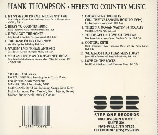 Hank Thompson: Here's To Country Music MUSIC AUDIO CD classic country! Step One