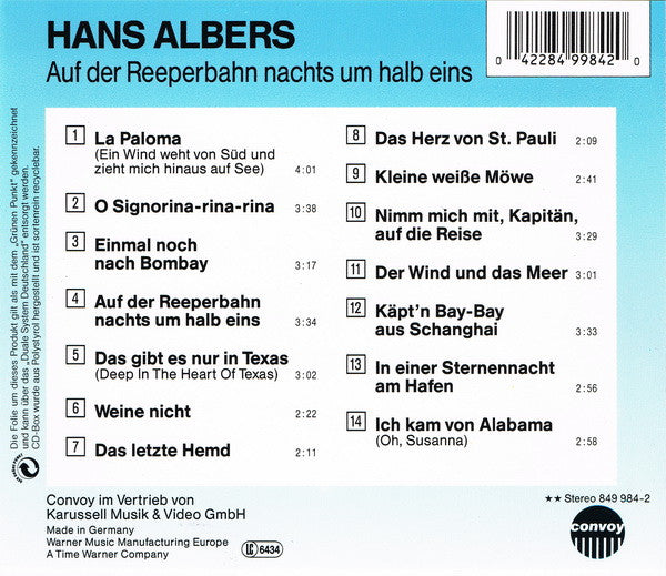 Hans Albers: Auf Der Reeperbahn Nachts Um Halb Eins MUSIC AUDIO CD German pop!
