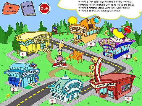 In WRITING EXPRESS, students are guided through neighborhood hot spots. Inside each location, they participate in interactive writing lessons and fun activities designed to teach the strategies and writing forms that good writers use. Throughout the program our animated WRITING EXPRESS mascot guides students and offers on-screen help when requested.