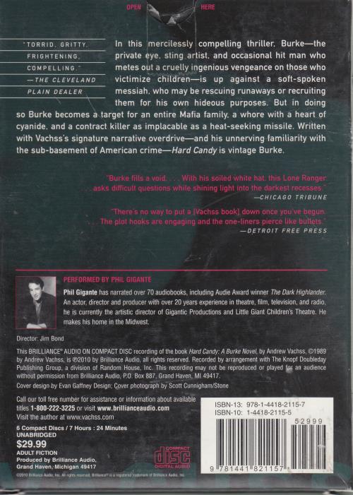 But in doing so Burke becomes a target for an entire Mafia family, a whore with a heart of cyanide, and a contract killer as implacable as a heat-seeking missile. Written with Vachss's signature narrative overdrive—and his unnerving familiarity with the sub-basement of American crime—Hard Candy is vintage Burke.