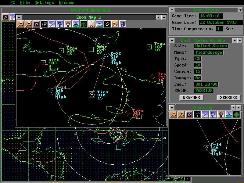 Engage in conflicts across thousands of miles of coastline using military style vector maps with U.S. Naval or civilian-style icons.