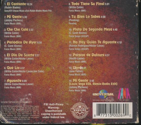 Compiled as part of The Originals series. Manufactured and distributed in partnership with Universal Music Distribution. Includes notable songwriting credits by Rubén Blades, Willie Colón and Johnny Pacheco.