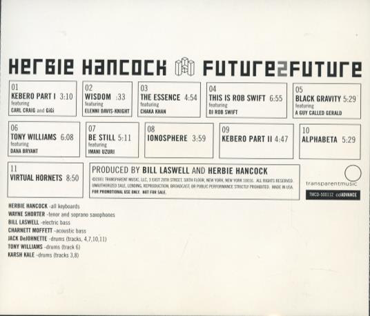 HERBIE HANCOCK: FUTURE 2 FUTURE PROMO W/ BACK ARTWORK, NO FRONT ARTWORK