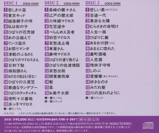 Hibari Misora: Original Best 50 3-Disc Set MUSIC AUDIO CD 1996 Columbia JAPANESE