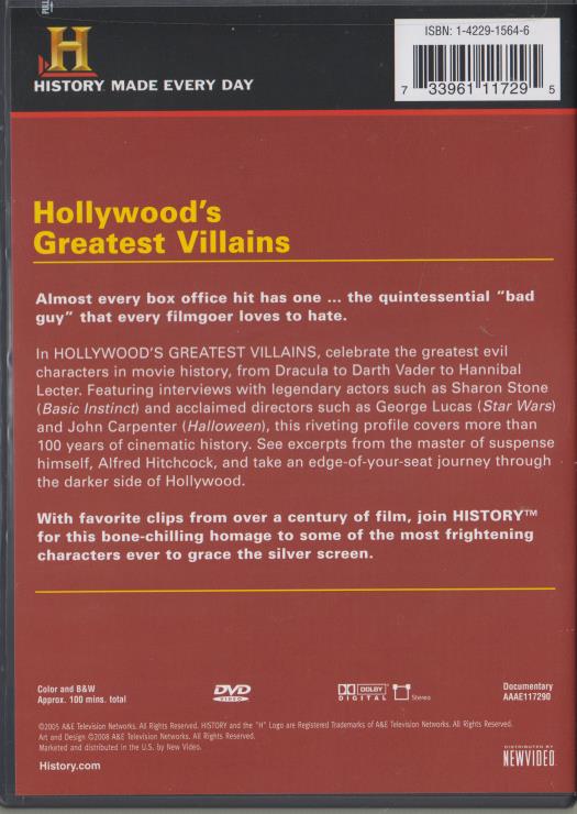 Hollywood's Greatest Villains DVD VIDEO DOCUMENTARY evil characters NEW SEALED