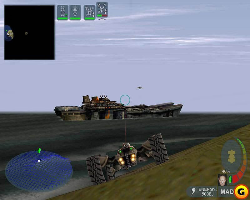 The Antaeus serves as the main base in this real-time strategy. A nanofactory on the ship allows for the production of several types of air, sea, and amphibious units. Resources are scarce, gathered primarily by recycling fallen units. A customizable interface allows players the ability to monitor several parts of the 3D map almost instantly. Different missions present players with strategic decisions concerning the most effective form of attack, whether it is more efficient to bomb out a factory, destroy supplies, or simply attack enemy units directly. There is even an option to take control of a single vehicle, placing the player in the line of fire to control the action from an up-close, third-person perspective. Hostile Waters is written on a modified version of Rage's Incoming engine, designed to provide smooth, fluid 3D action and impressive special effects.