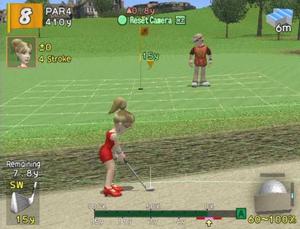 Sony's offbeat Hot Shots Golf series tees off on the PlayStation 2 with 15 playable characters on six fictitious golf courses. Graphics are rendered entirely in 3D and courses are playable in four different seasons, which alters their appearance and overall difficulty based on weather and wind. As in the two previous games, a horizontal meter is used to determine power and accuracy. A variety of single-player and multiplayer modes are featured, with four-player support in Stroke Play and Match Play.