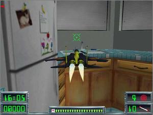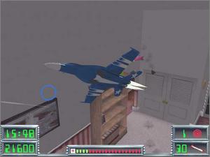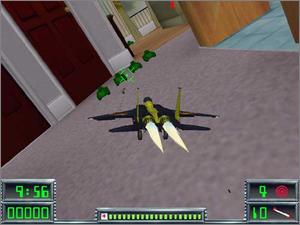 Free Fly mode allows pilots to fly around the house anywhere they choose, allowing them to get a feel for the game. Players can select to fly the Air Fighter, Tank Blaster, Sea Plane, Striker Jet, Heavy Bomber, Transport Gunner, and Flying Saucer, with three bonus aircraft available within certain missions in Campaign mode. Three difficulty settings and two flight views are available, and the game supports joystick controls.