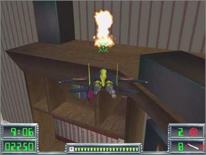 What's a person to do when the evil Bossbot takes control of their toys and even their house? In this case, they hop in one of seven cockpits of the various aircraft available in Hot Wheels Jetz and save the day. Hot Wheels Jetz allows players to control the various aircraft through different rooms of a three-dimensional virtual house, dodging dressers, refrigerators, and banisters as they pursue the enemy and complete mission objectives. Players must complete ten missions in campaign mode or can simply enjoy the view in free fly mode.