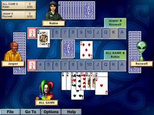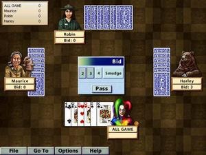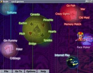 The 2000 edition of Hoyle Card Games updates and enhances a previously released Sierra collection. A total of 16 games are included, many of which can be played by as many as four human players or against computer controlled characters. Two new games have been added to the mix: Pitch and Canasta. Rounding out the collection is Bridge, Crazy Eights, Cribbage, Euchre, Gin Rummy, Go Fish, Hearts, Memory Match, Old Maid, Pinochle, Spades, War and variations of poker and solitaire.