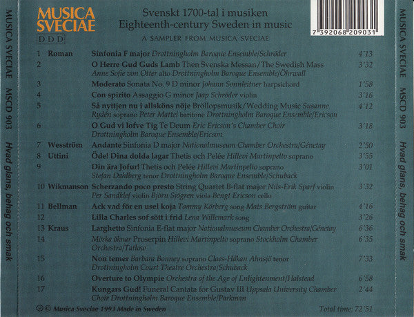 Hvad Glans, Behag Och Smak: Svenskt 1700-tal I Musiken Sampler MUSIC AUDIO CD