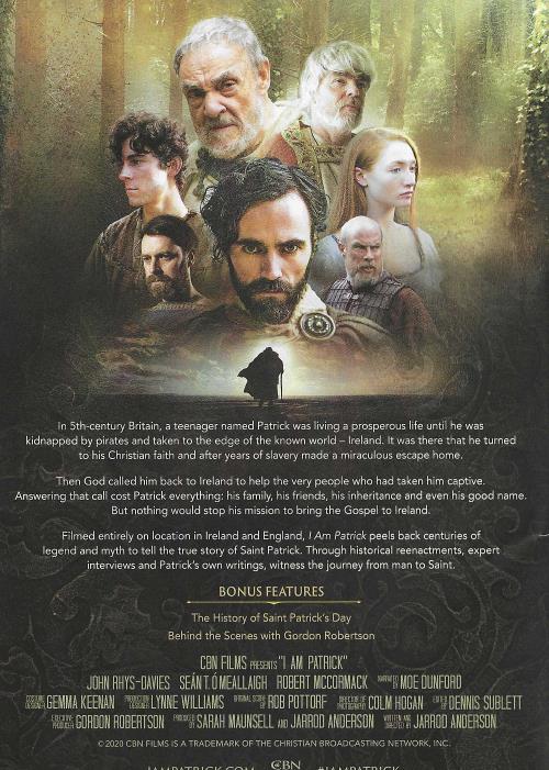 In 5th-century Britain, a teenager named Patrick was living a prosperous life until he was kidnapped by pirates and taken to the edge of the known world — Ireland. It was there that he turned to his Christian faith and after years of slavery made a miraculous escape home. Then God called him back to Ireland to help the very people who had taken him captive. Answering that call cost Patrick everything: his family, his friends, his inheritance and even his good name. But nothing would stop his mission to bring the Gospel to Ireland. Filmed entirely on location in Ireland and England, I Am Patrick peels back centuries of legend and myth to tell the true story of Saint Patrick. Through historical reenactments, expert interviews and Patrick's own writings, witness the journey from man to Saint. Z BONUS FEATURES The History of Saint Patrick's Day Behind the Scenes with Gordon Robertson