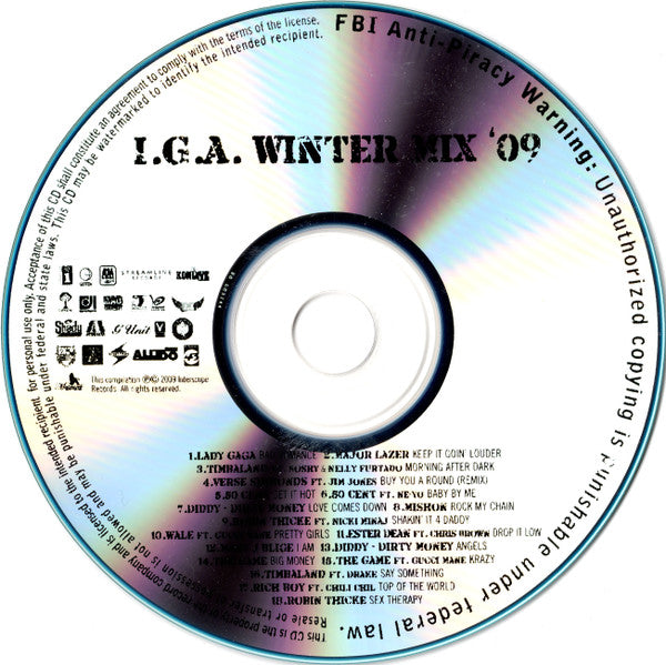 I.G.A. Winter Mix 09 PROMO MUSIC AUDIO CD Lady Gaga Timbaland 50 Cent Diddy Game