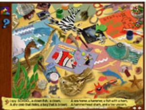 As in Word Block City, Chalkboard, Nature and Craft Projects reward players with treasures to be used in the Make Your Own I Spy Game module. The first requires solving riddles and searching for items used throughout the school year, the second takes the item search to nature-related layouts such as the beach, plants and insects while the last requires searching within craft projects.