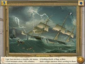 The activity in I Spy Treasure Hunt takes the player a step further than Spooky Mansion -- once the map fragments are found and pieced together, players must then track down the treasure to one of the locations in the town. Map pieces are discovered by solving I Spy-style riddles found through exploration of the town. Three separate treasure maps from different local pirates provide 20 locations, each filled with clues to solve the mystery.
