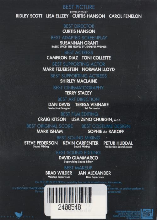 In Her Shoes FYC DVD VIDEO MOVIE dramedy Cameron Diaz Toni Collette MacLaine