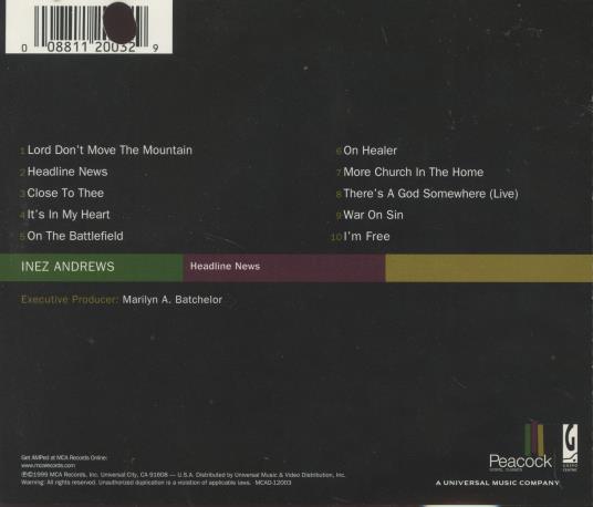 Inez Andrews: Headline News MUSIC AUDIO CD peacock gospel funk classics! 1999