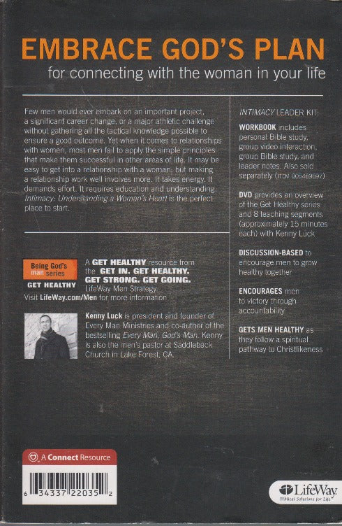 INTIMACY LEADER KIT: WORKBOOK includes personal Bible study, group video interaction, group Bible study, and leader notes. Also sold separately (ITEM 005469697) DVD provides an overview of the Get Healthy series and 8 teaching segments (approximately 15 minutes each) with Kenny Luck DISCUSSION-BASED to encourage men to grow healthy together ENCOURAGES men to victory through accountability GETS MEN HEALTHY as they follow a spiritual pathway to Christlikeness