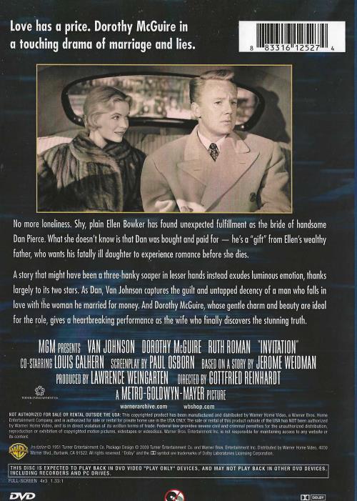 Invitation DVD VIDEO MOVIE bride fatally ill daughter romance love story! 1951