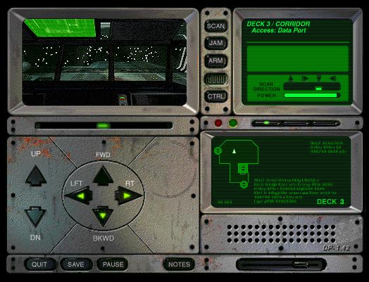 In this game of cat and mouse, you control a robot probe that must stop a renegade starship that is carrying a devastating weapon, before it reaches its target. In this virtual reality world, you must negotiate the ins and outs of this starship to find just the right controls to stop it. You are not alone; you must elude the vicious Defender. Using the strategy elements, you create a storyline that allows you to play for hours at a time.
