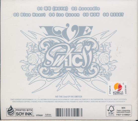 IVE The 2nd EP IVE SWITCH. Manufactured by ILJIN Corporation. Distributed by Kakao Entertainment. Printed with soy ink. FSC certified.