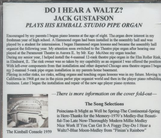 Jack Gustafson: At His Kimball 3/14 Pipe Organ: Do I Hear A Waltz?