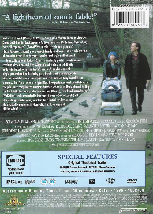 Jack & Sarah DVD VIDEO MOVIE single parenthood baby girl! OOP 1996 Richard Grant