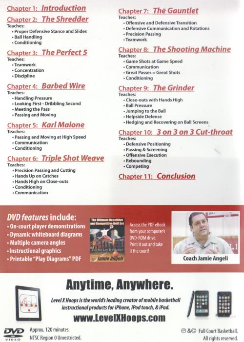 This instructional DVD by Coach Jamie Angeli presents a complete, repetitive team drill system designed to develop teamwork, conditioning, decision making, and execution under pressure. The release includes a free 68-page Assembly Line eBook (PDF) with an additional drill, diagrams, and useful information.