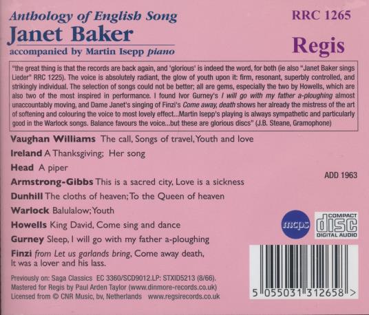 Janet Baker: Anthology Of English Song MUSIC AUDIO CD classical piano '66 Regis