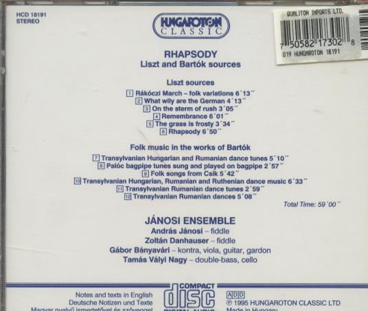 Janosi Ensemble: Rhapsody / Liszt & Bartok Sources