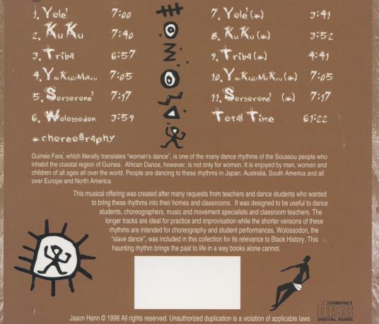 An instructional dance video entitled 'West African Dance with Abdoulaye Camara' was produced in conjunction with the c.d. Several dances are taught by Guinea native Abdoulaye Camara including Kuku, Yole and Triba which are also on the c.d.