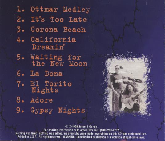 Nothing was fixed, nothing was edited, no overdubs were made, everything on this CD was performed live. © 1998 Jasso & Garcia.